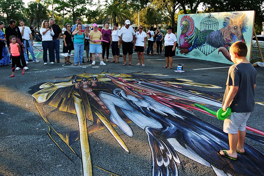 3D streetpainting “Terror Bird” made by Remko van Schaik at Chalk Festival 2014 – Venice Florida. The theme fot this year was ‘Extinct and Endangered Species’.